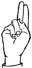 На ћирилици написано НАДИЦА ЛАПЧЕВИЋ састоји се из 14 слова [?]. Исписано ћириличном једноручном азбуком за глувонеме: